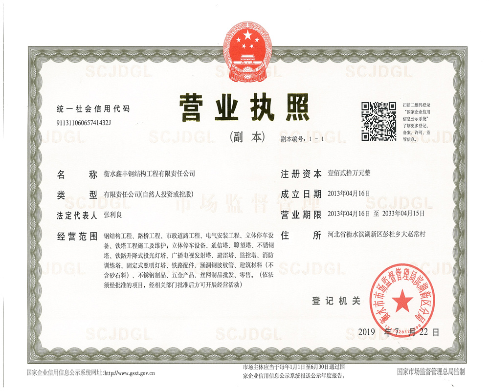 衡水鑫豐鋼結(jié)構(gòu)工程有限責任公司建于 2003年, 技術(shù)力量雄厚 , 專注生產(chǎn)鋼結(jié)構(gòu)鐵塔系列產(chǎn)品 。本廠具有鋼、鋁塔設(shè)計,制作以及鑄造、鉚焊、鍛壓、熱鍍鋅、防腐等綜合制作能力,在設(shè)計、制作、安裝以及專用設(shè)備方面有豐富的經(jīng)驗。